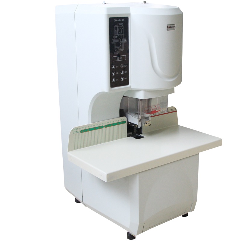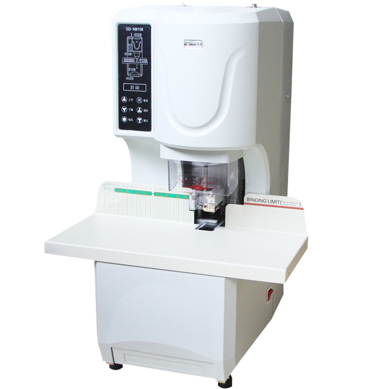 商品属性 [商品重量] 40kg [编码] 2.13.01.05.04.002.00008 [型号] GD-NB108 [单位] 台 [类别] 全自动 [容量] 6.0mm铆管,全自动一键完成打孔/送料/装订 [装订厚度] 50mm [其他] 电动打孔,电动装订