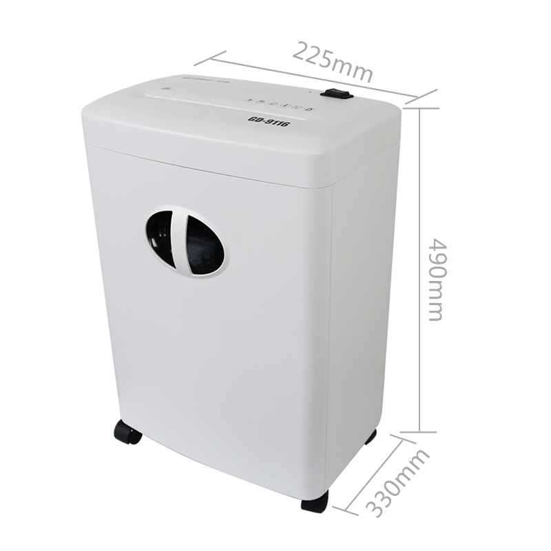 商品重量 [商品重量] 8.9kg [编码] 2.13.01.05.09.002.00001 [最大碎纸量] 碎纸张数6张 [噪音] <58db [切碎介质] 纸 [类别] 金鹰系列 [容量] 碎纸效果2*15mm,入口宽度220mm,16L容量 [型号] GD-9116