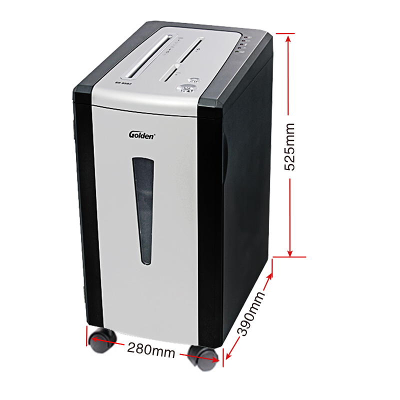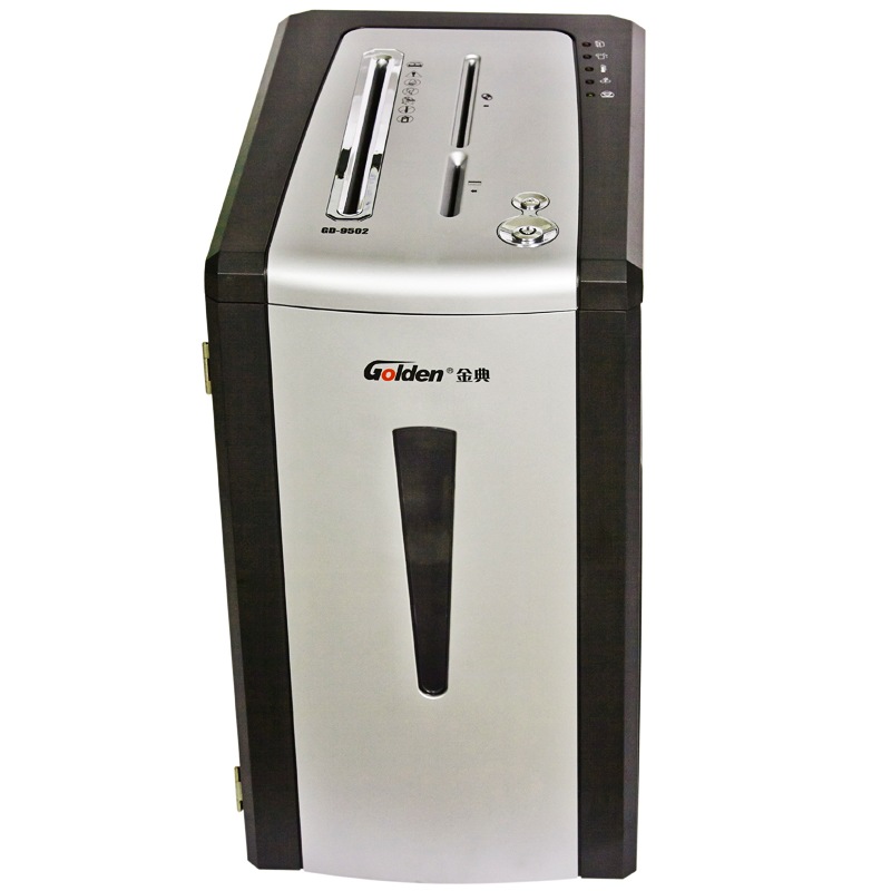 商品重量 [商品重量] 17kg [编码] 2.13.01.05.09.002.00008 [最大碎纸量] 碎纸张数8张 [噪音] <58db [切碎介质] 纸、信用卡、CD [类别] 金鹰系列 [容量] 碎纸效果2*6mm,三入口宽度230mm,双入口,23L容量 [型号] GD-9502 [单位] 台