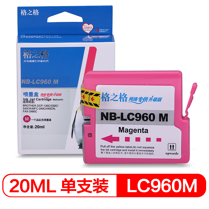 商品属性 [商品重量] 80.00g [类目名称] 墨盒 [型号] NB-LC960M [颜色] 洋红色 [适用机型] 兄弟;DCP-540CN;DCP-130C;DCP-230C;MFC440CN;MFC240;MFC330C;2480C;3360C [编码] 2.14.01.02.05.003.00003