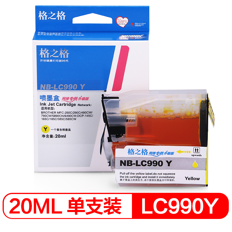 商品属性 [商品重量] 60.00g [类目名称] 墨盒 [型号] NB-LC990Y [颜色] 黄色 [适用机型] 兄弟;MFC-250C;MFC-290C;MFC-490CW;MFC-990CW;MFC-5490CN;MFC-5890CN;MFC-6490CW;MFC-670CD;MFC-670CDW;MFC-990CW;MFC-5490CN;5890CN;MFC-6490CW;DCP-145C;DCP-165C;DCP-385C;DCP-585CW [编码] 2.14.01.02.05.003.00008