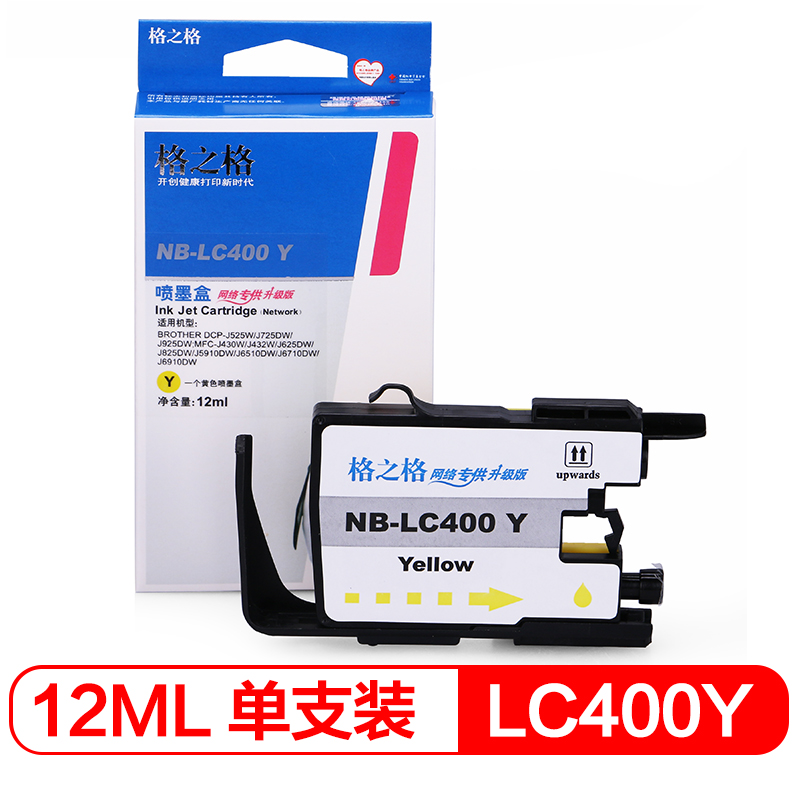 商品属性 [商品重量] 60.00g [类目名称] 墨盒 [型号] NB-LC400Y [颜色] 黄色 [适用机型] 兄弟;MFC-J625DW;MFC-J825DW;MFC-J430W;MFC-J6910DW;MFC-J6710DW [编码] 2.14.01.02.05.003.00016