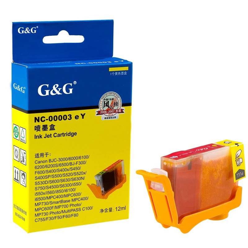 商品属性 [商品重量] 40.00g [类目名称] 墨盒 [型号] NC-00003eY [颜色] 黄色 [适用机型] Canon BJC-3000/6000/6100/6200/200S/6500/BJF300/F600/S400/i550/i550x/Canon BJC-i56/i850/i860/i865/i6100/i6500/S400/S400x/S400SP/S450/S500/Canon BJC-/S520/S520x/S530D/S600/S630/S630N/S750/S4500/S6300 [编码] 2.14.01.02.05.003.00022