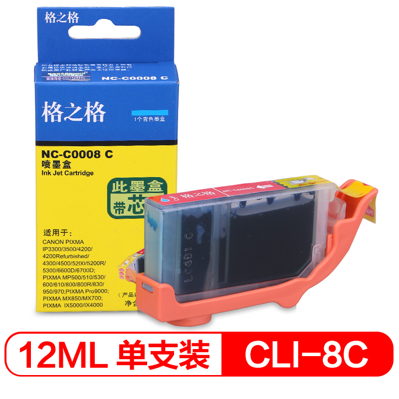 商品属性 [商品重量] 60.00g [类目名称] 墨盒 [型号] NC-C0008C [颜色] 青色 [适用机型] 佳能;IP4200;IP4200;IP4300;IP4500;5200;5200R;IP5300;IP3300;MP600;MP610;MP810; MP500;MP510;530;MP700;800;800R;MP830;MP850;950;970;IX4000;IX5000;IP3500 [编码] 2.14.01.02.05.003.00025