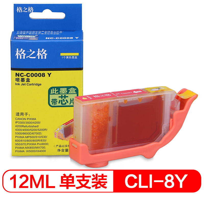 商品属性 [商品重量] 60.00g [类目名称] 墨盒 [型号] NC-C0008Y [颜色] 黄色 [适用机型] 佳能;IP4200;IP4200;IP4300;IP4500;5200;5200R;IP5300;IP3300;MP600;MP610;MP810; MP500;MP510;530;MP700;800;800R;MP830;MP850;950;970;IX4000;IX5000;IP3500 [编码] 2.14.01.02.05.003.00027