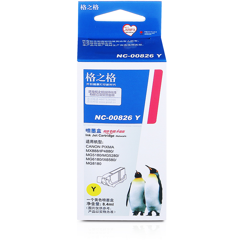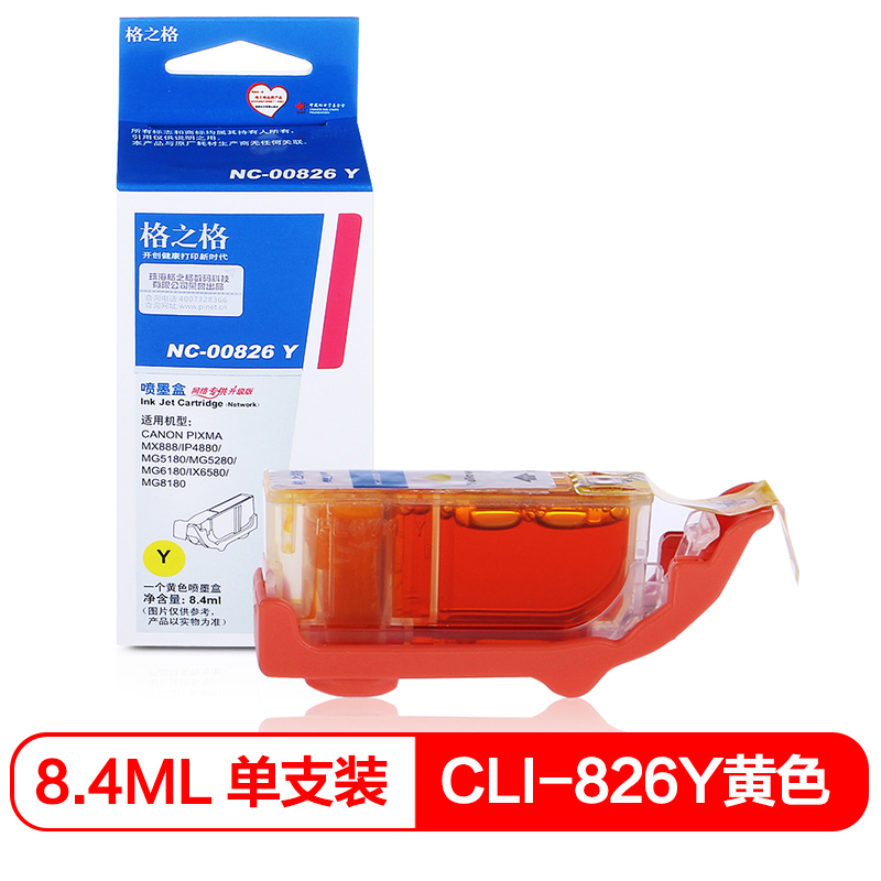 商品属性 [商品重量] 20.00g [类目名称] 墨盒 [型号] NC-00826Y [颜色] 黄色 [适用机型] 佳能;IP4880;G5180;MG5280;G6180;MG8180;MX888;IX6580 [编码] 2.14.01.02.05.003.00039
