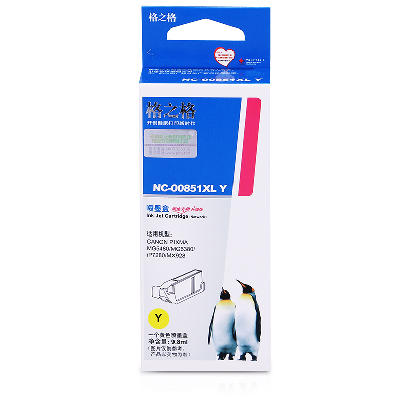 商品属性 [商品重量] 40.00g [类目名称] 墨盒 [型号] NC-00851XLY [颜色] 黄色 [适用机型] CNAON;MG6380;5480;7180;5580;IP7280;MX728;MX928 [编码] 2.14.01.02.05.003.00044