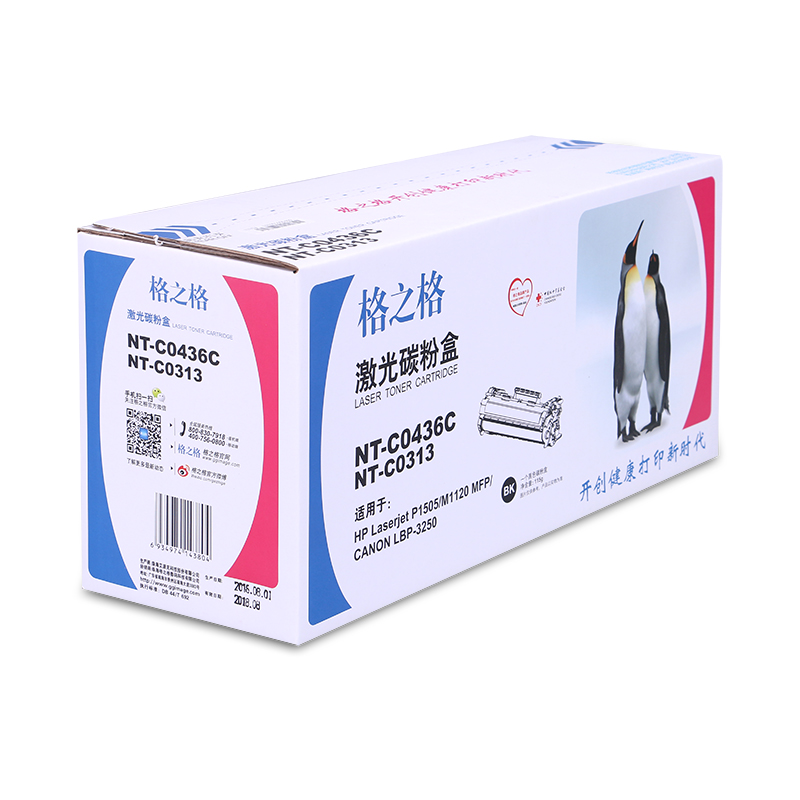 商品属性 [商品重量] 1.5kg [类目名称] 格之格 NT-C0436C硒鼓 鼓粉一体 含粉量105g 打印页数2000页 [型号] NT-C0436C [颜色] 黑色 [适用机型] HP Laserjet P1505/P1505n HP Laserjet M1120/M1522n/M1522nf Canon LBP-3250 [编码] 2.14.01.02.05.001.00011
