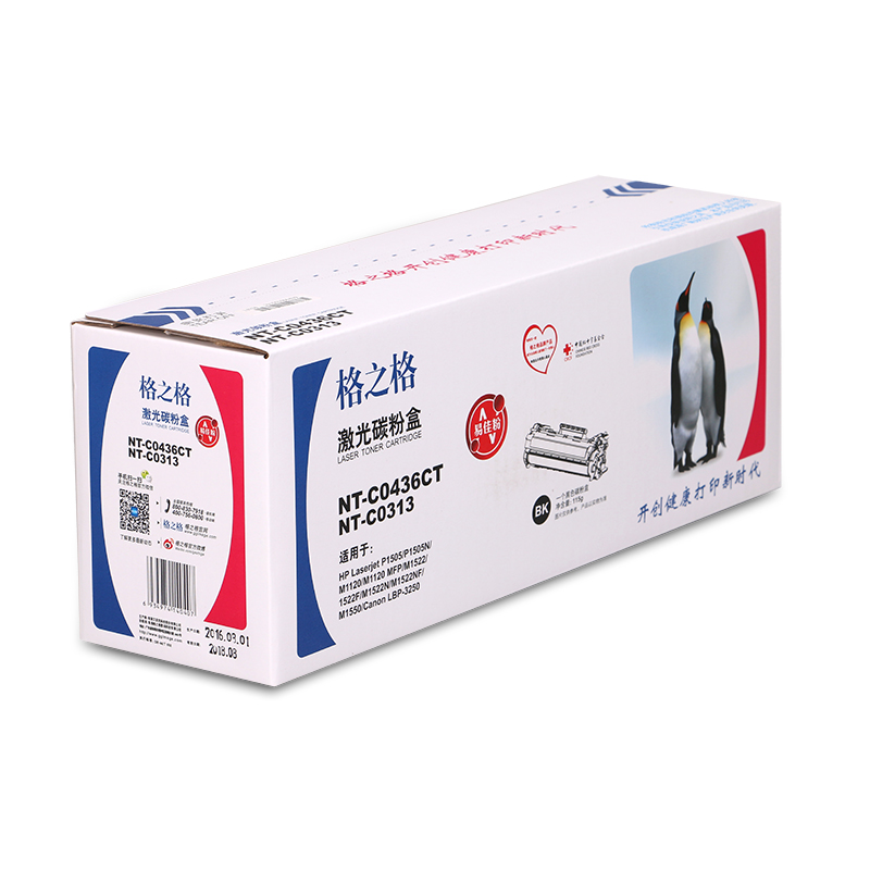 商品属性 [商品重量] 0.95kg [类目名称] 格之格 NT-C0436CT硒鼓 鼓粉一体 含粉量100g 打印页数2000页 [型号] NT-C0436CT [颜色] 黑色 [适用机型] HP Laserjet P1505/P1505n HP Laserjet M1120/M1522n/M1522nf Canon LBP-3250 [编码] 2.14.01.02.05.001.00012