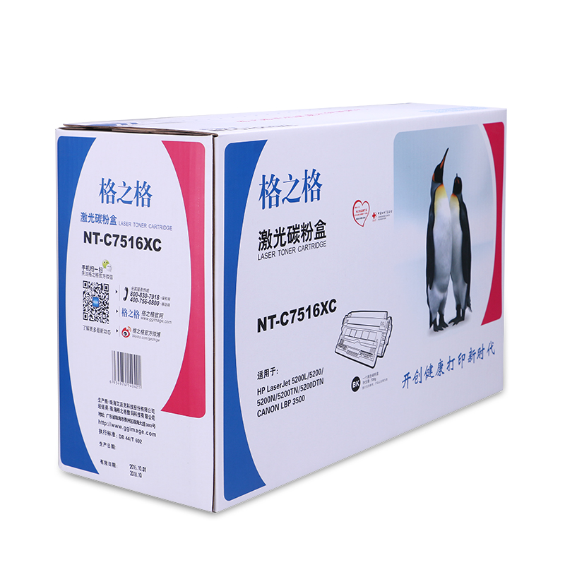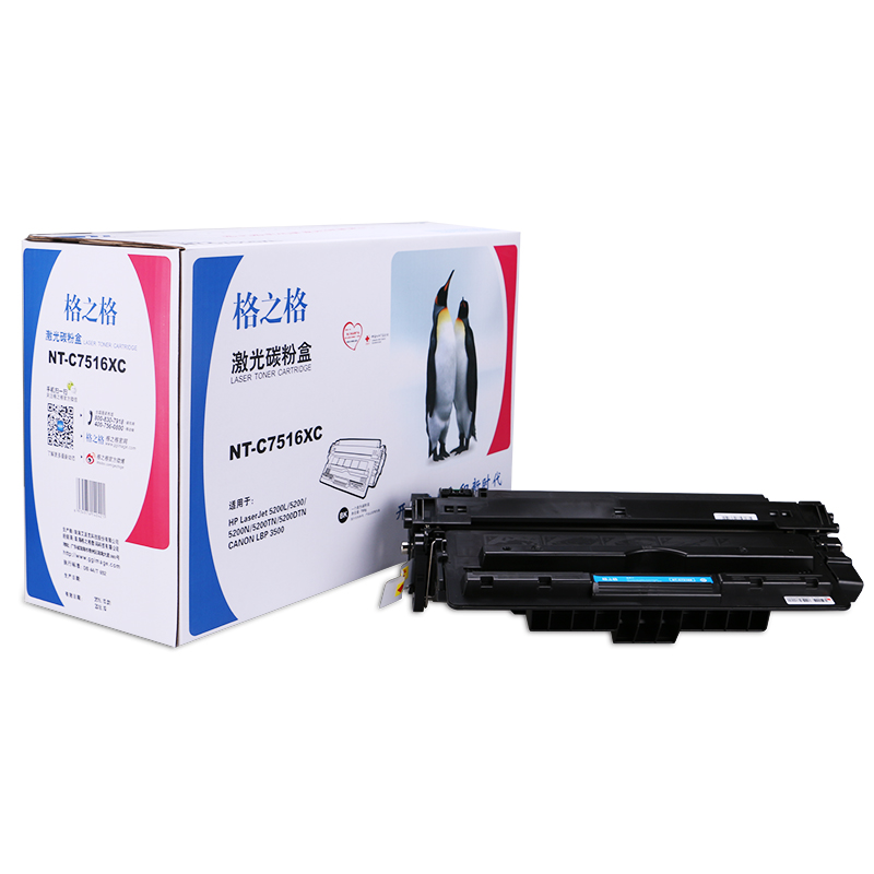 商品属性 [商品重量] 3.01kg [类目名称] 格之格 NT-C7516XC硒鼓 鼓粉一体 含粉量450g 打印页数12000页 [型号] NT-C7516XC [颜色] 黑色 [适用机型] HP LaserJet 5200L/5200/5200n/5200dtn/5200LX/5200TN CANON LBP-3500 [编码] 2.14.01.02.05.001.00019