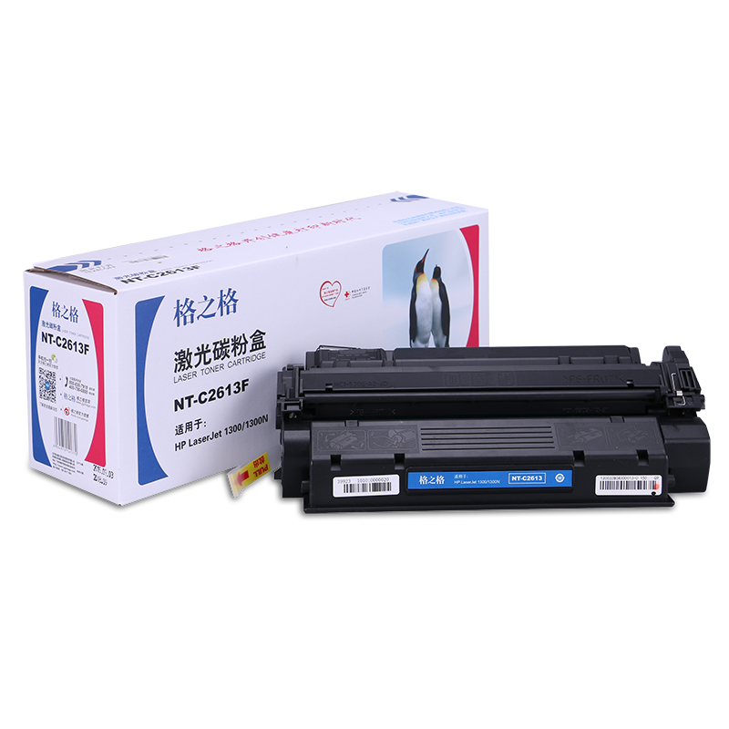 商品属性 [商品重量] 1.04kg [类目名称] 格之格 NT-C2613F硒鼓 鼓粉一体 含粉量150g 打印页数2500页 [型号] NT-C2613F [颜色] 黑色 [适用机型] HP LaserJet 1300/1300N [编码] 2.14.01.02.05.001.00021