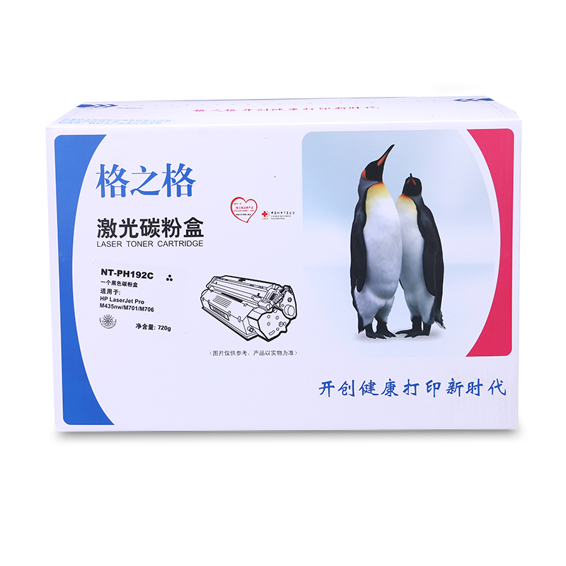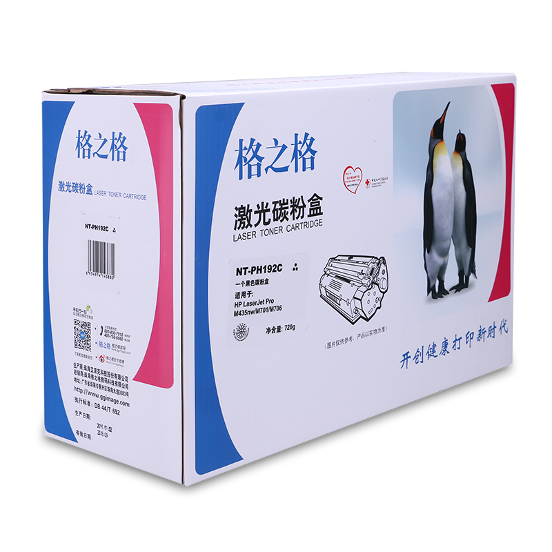 商品属性 [商品重量] 3.46kg [类目名称] 格之格 NT-PH192C硒鼓 鼓粉一体 含粉量720g 打印页数12000页 [型号] NT-PH192C [颜色] 黑色 [适用机型] HP LaserJet Pro M435nw/M701/M706 [编码] 2.14.01.02.05.001.00023