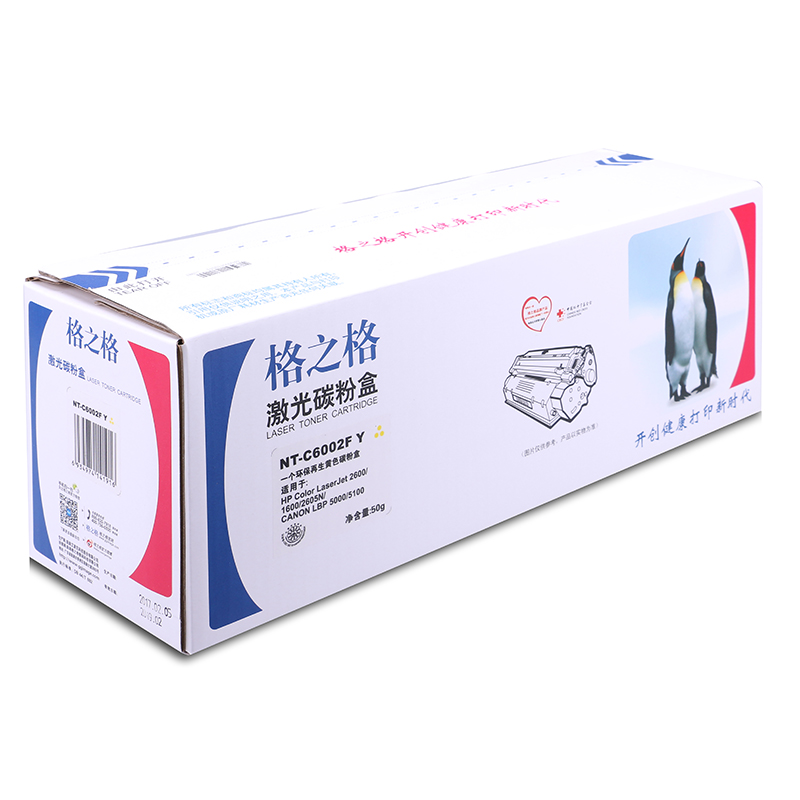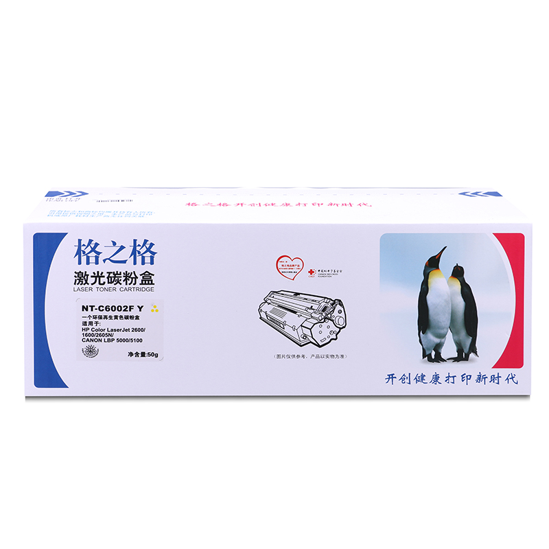 商品属性 [商品重量] 0.984kg [类目名称] 格之格 NT-C6002F硒鼓 鼓粉一体 含粉量50g 打印页数2000页 [型号] NT-C6002F [颜色] 黄色 [适用机型] HP Color Laserjet 2600/1600/2605NCanon LBP5000/5100 [编码] 2.14.01.02.05.001.00033