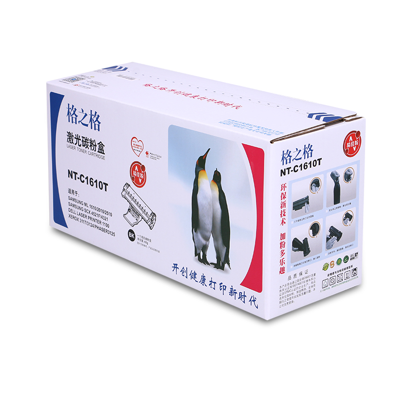 商品属性 [商品重量] 1.12kg [类目名称] 格之格 NT-C1610T硒鼓 鼓粉一体 含粉量65g 打印页数2000页 [型号] NT-C1610T [颜色] 黑色 [适用机型] Samsung ML1610/2010/2510/SCX 4521F/4321 Dell Laser Printer 1100 XEROX 3117/3124/Phaser3125 [编码] 2.14.01.02.05.001.00036