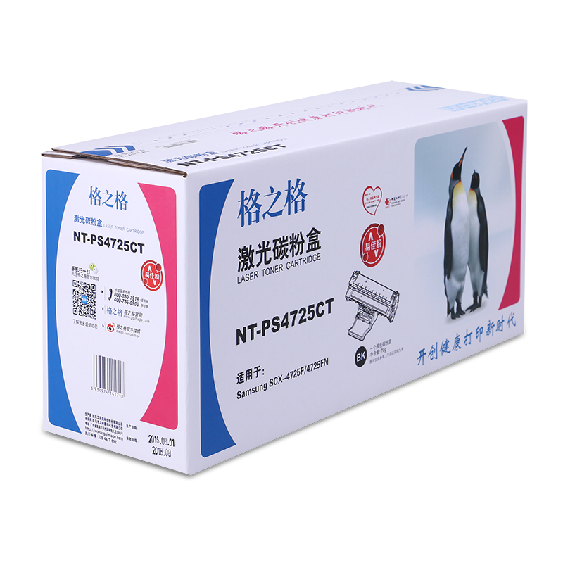 商品属性 [商品重量] 1.14kg [类目名称] 格之格 NT-PS4725CT硒鼓 鼓粉一体 含粉量70g 打印页数2000页(5%覆盖率) [型号] NT-PS4725CT [颜色] 黑色 [适用机型] Samsung;SCX 4725FN [编码] 2.14.01.02.05.001.00038