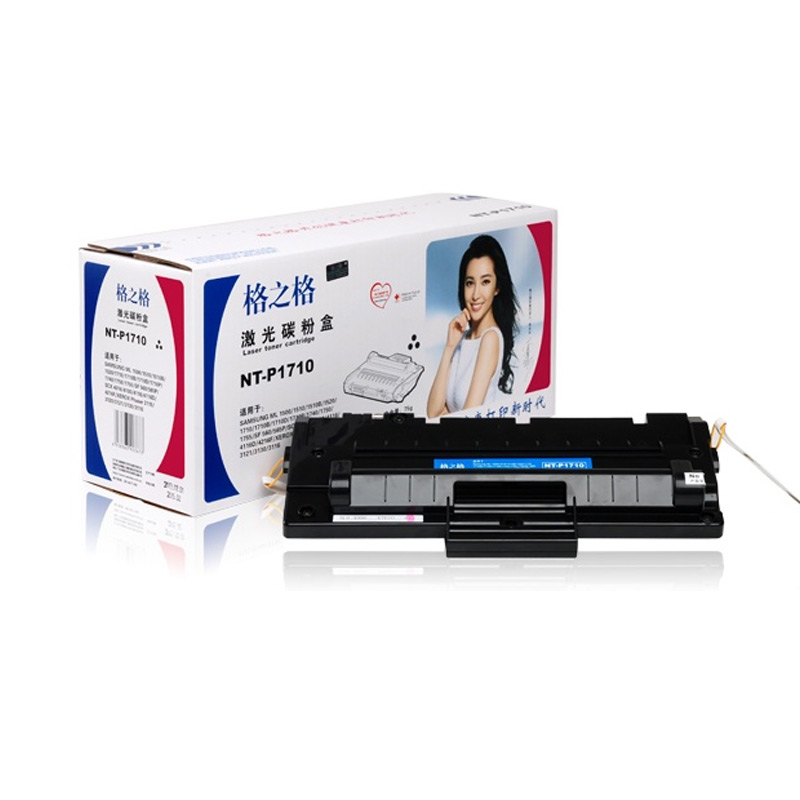 商品属性 [商品重量] 1.09kg [类目名称] 格之格 NT-P1710硒鼓 鼓粉一体 含粉量75g 打印页数3000页 [型号] NT-P1710 [颜色] 黑色 [适用机型] "SamsungML- 1500/1510/1510B/1520/1710/1710B/1710D/1710P/1740/1750/1755 Samsung SCX 4016/SCX-4100/4116/4116D/4216F Samsung SF 560/565 PXerox Phaser 3115/3120/3121/3130/3116" [编码] 2.14.01.02.05.001.00043