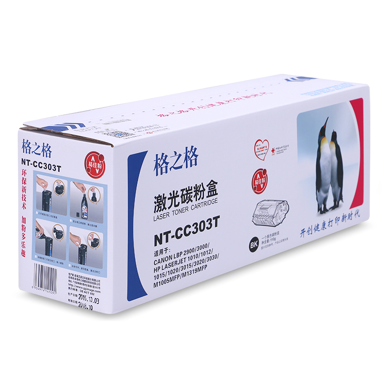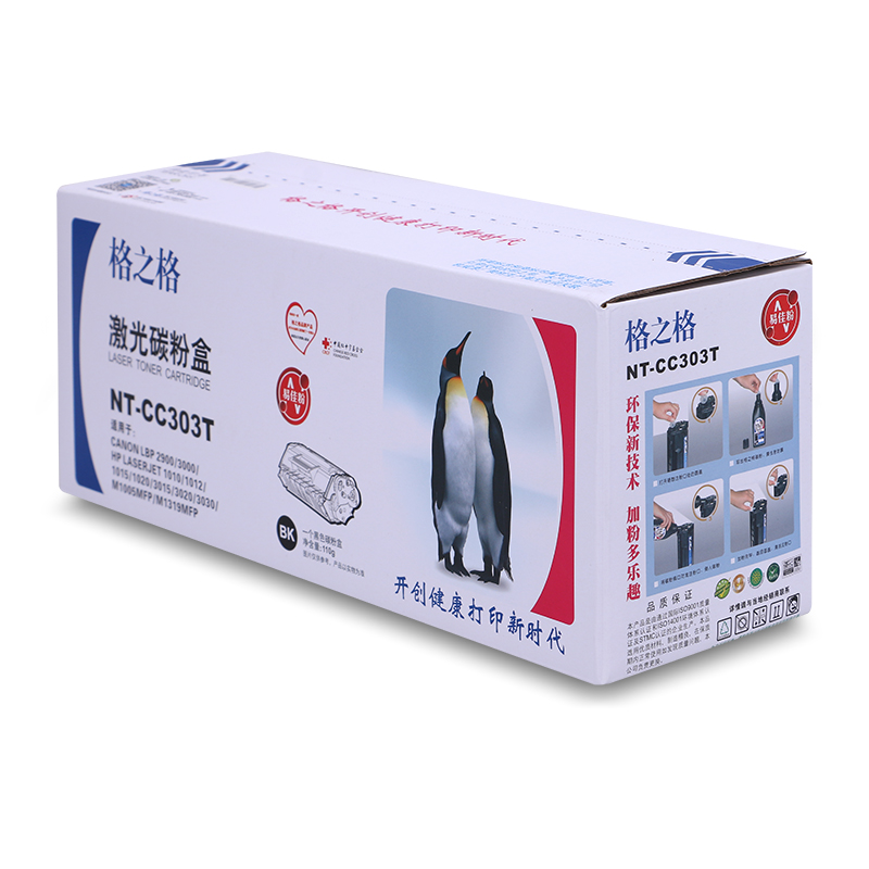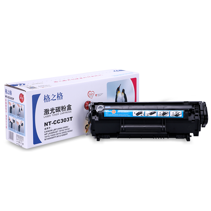 商品属性 [商品重量] 0.96kg [类目名称] 格之格 NT-CC303T硒鼓 鼓粉一体 含粉量 115g 打印页数2000页 [型号] NT-CC303T [颜色] 黑色 [适用机型] "Canon LBP2900/3000 HP LaserJet 1010/1012/1015/1020/3015/3020/3030" [编码] 2.14.01.02.05.001.00053