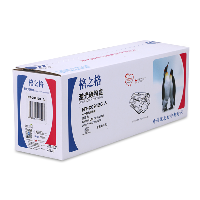 商品属性 [商品重量] 0.85kg [类目名称] 格之格 NT-C0912C硒鼓 鼓粉一体 含粉量75g 打印页数1500页 [型号] NT-C0912C [颜色] 黑色 [适用机型] CANON LBP-3018/3108/3050/3100/3150/3010 [编码] 2.14.01.02.05.001.00055