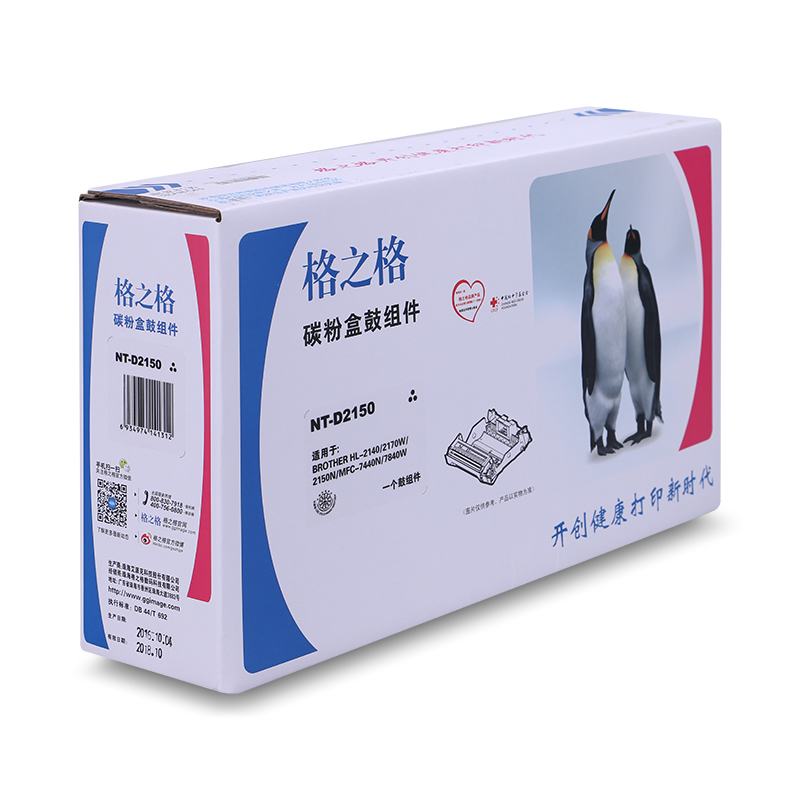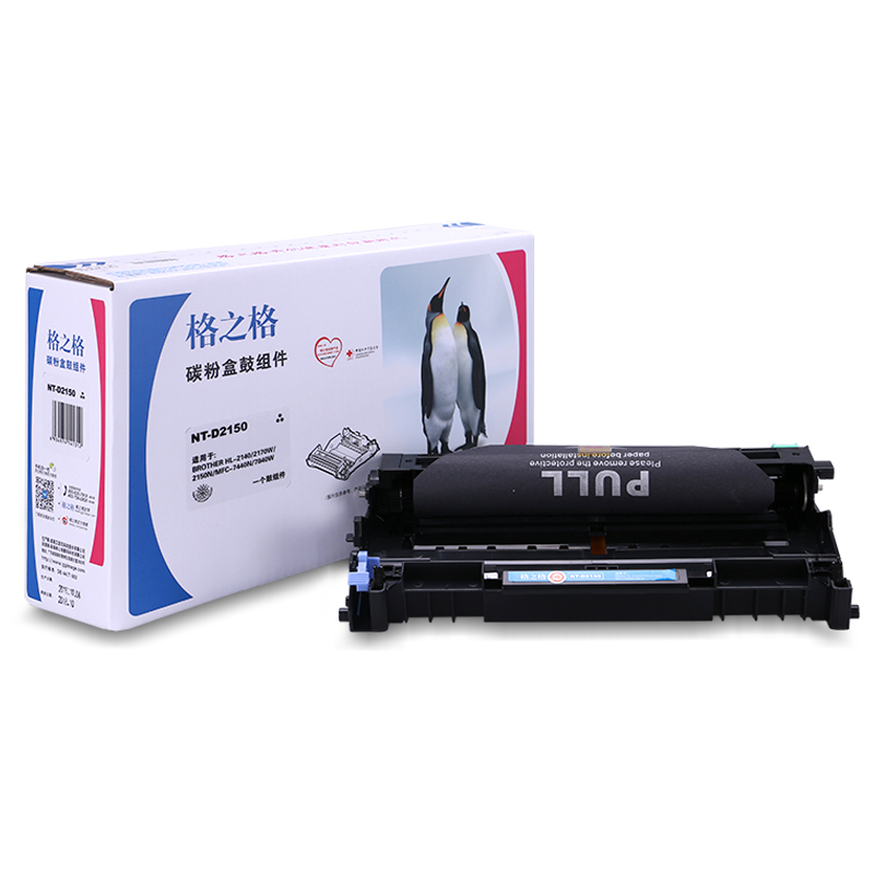 商品属性 [商品重量] 0.852kg [类目名称] 格之格 NT-D2150硒鼓 鼓粉分离 含粉量0g 打印页数12000页 [型号] NT-D2150 [颜色] 黑色 [适用机型] Brother HL-2140/2170W/2150N Brother MFC-7440N/7840W [编码] 2.14.01.02.05.001.00073