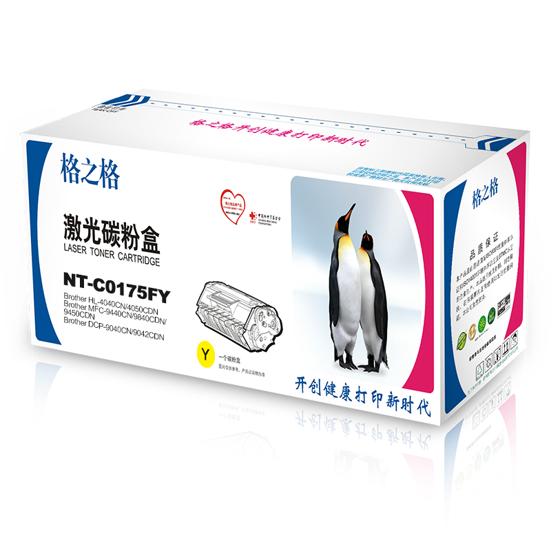 商品属性 [商品重量] 1.25kg [类目名称] 格之格 NT-C0175F Y硒鼓 鼓粉一体 含粉量60g 打印页数4000页 [型号] NT-C0175F Y [颜色] 黄色 [适用机型] Brother HL-4040CN/4050CDNBrother MFC-9440CN/9840CDN/9450CDNBrother DCP-9040CN/9042CDN [编码] 2.14.01.02.05.001.00076