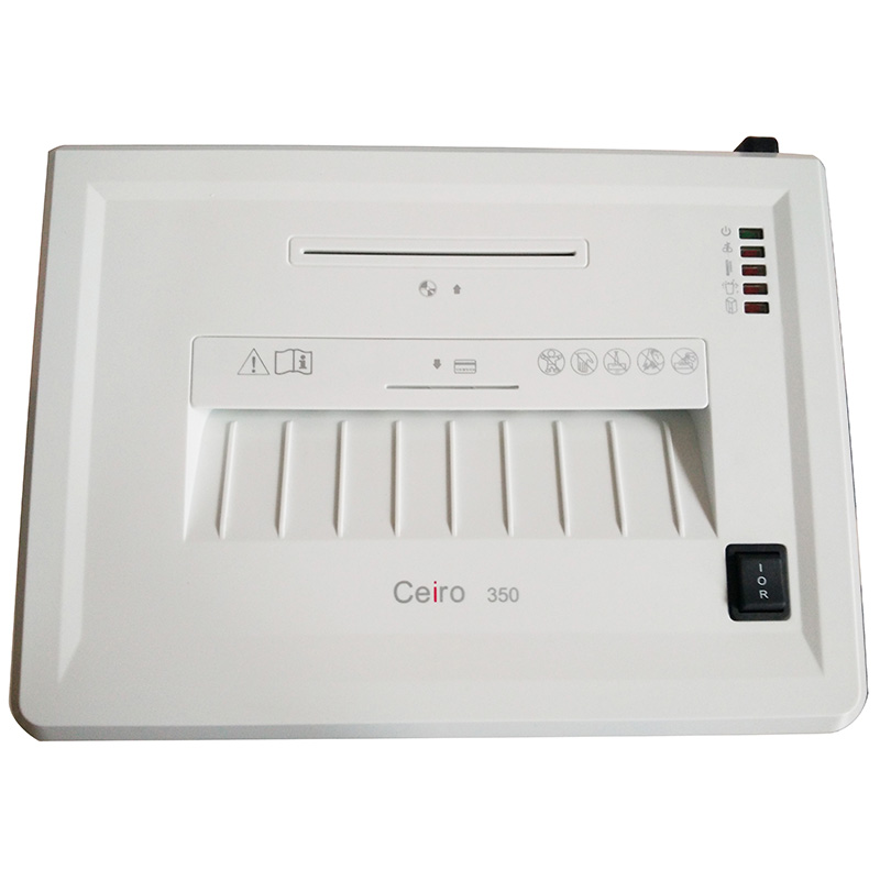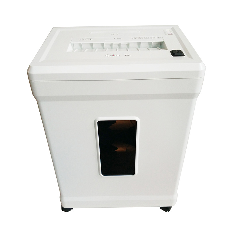 商品重量 [商品重量] 9.7 kg [编码] 2.13.01.05.09.003.00001 [最大碎纸量] 1-10 张(A4 70g/㎡) [噪音] 48dB [切碎介质] 纸张、装订针钉、光盘、PVC卡 [类别] 碎纸机 [容量] 25 L [型号] C350 [单位] 台