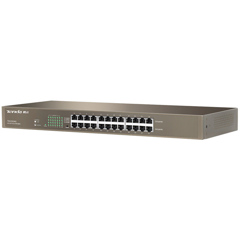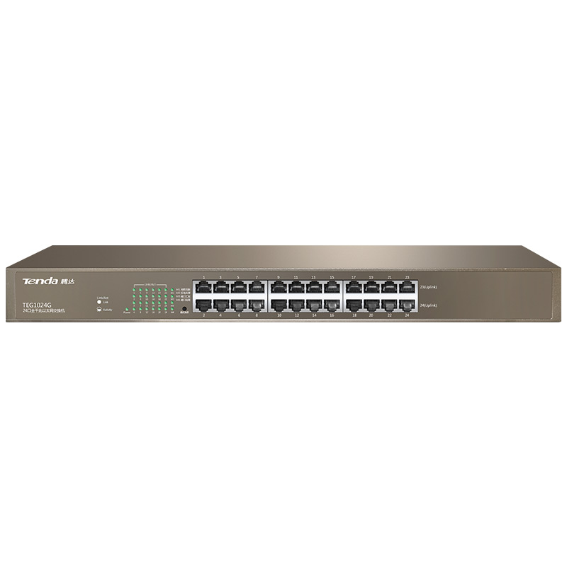 商品属性 [品名] 腾达(Tenda)TEG1024G 24口千兆网络交换机钢壳机架式企业工程网络专用分线器 tlw1 [型号] TEG1024G [编码] 2.14.01.02.08.001.00631 [重量] 2.225kg