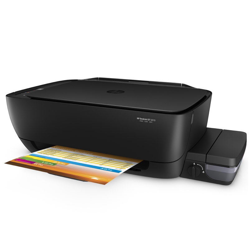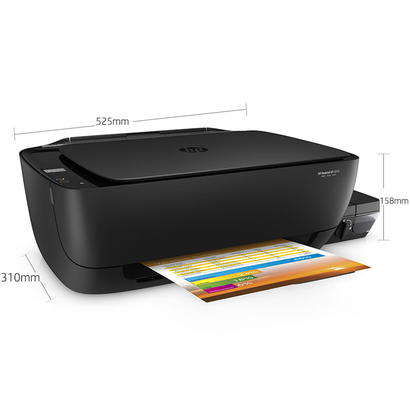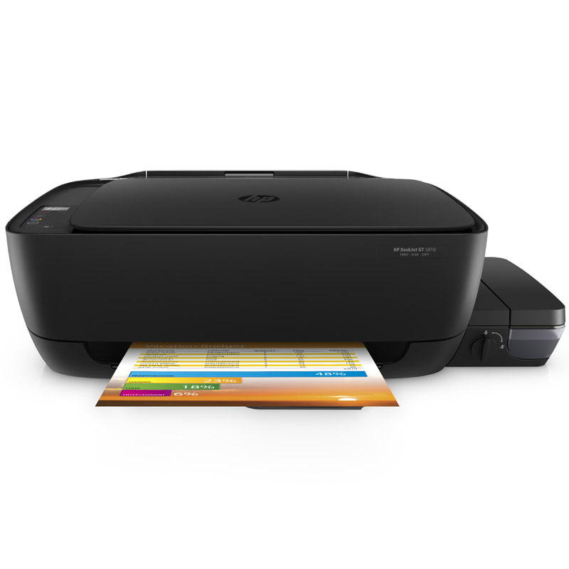 商品属性 [型号] HP DeskJet GT 5810 [商品重量] 6.58kg [类型] 多功能一体机 [打/复/扫/传幅面] A4 [分辨率] 1200 x 1200 dpi [打印速度] 黑白:8页/分;彩色:16页/分 [打印机语言] HP PCL3 GUI [打印负荷] 1000页/月 [扫描方式] 平板式 [双面扫描] 手动 [尺寸] 525×310×158(mm) [噪音水平] 47dB [编码] 2.14.01.02.08.001.00165