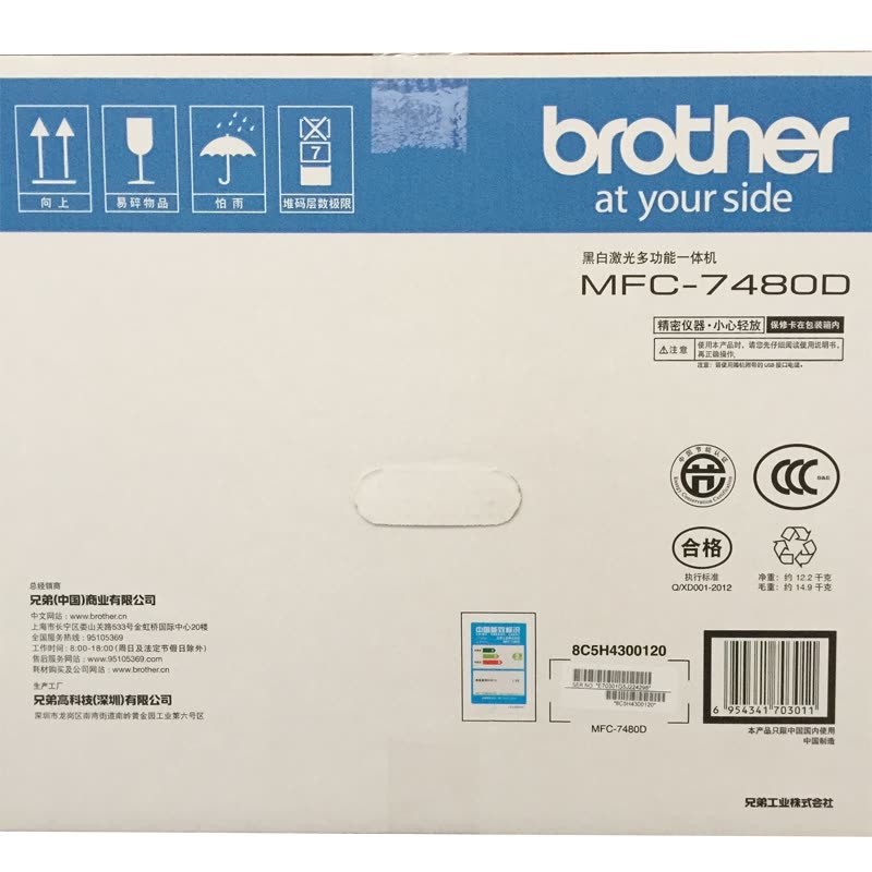 商品属性 [型号] MFC-7480D [商品重量] 15.0kg [类型] 多功能一体机 [打/复/扫/传幅面] A4 [分辨率] 600×600dpi [打印机语言] GDI [扫描方式] 平板式 [双面扫描] 自动 [尺寸] 481×398.5×316.5(mm) [噪音水平] 50dB(A) [编码] 2.14.01.02.08.001.00757