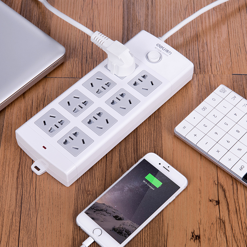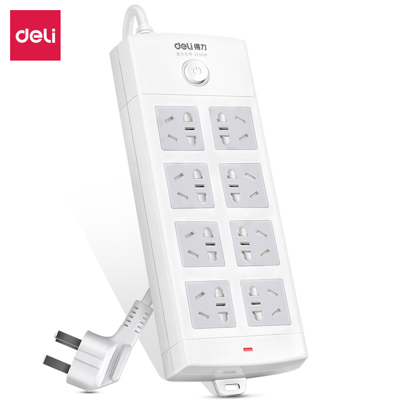 得力(deli)18211 新国标8位组合孔3米 大孔距总控开关插座/插排/插线板/拖线板