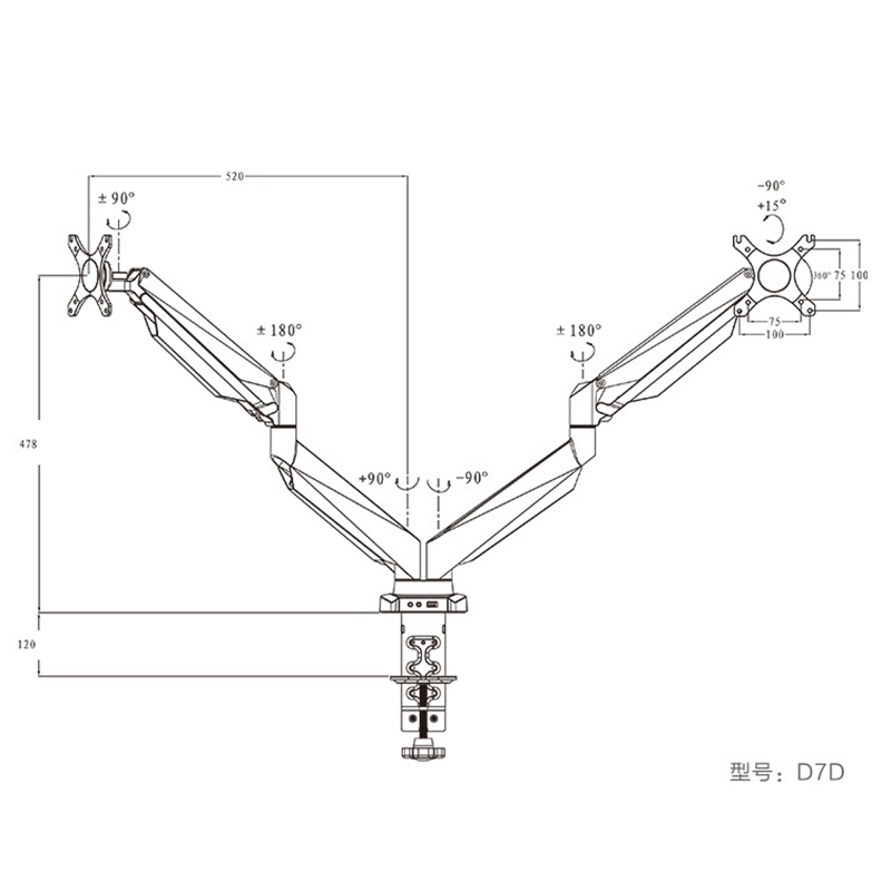 乐歌 D7D 双屏显示器支架 //承重2-9KG每屏/适用尺寸20-29英寸,部分30-34英寸