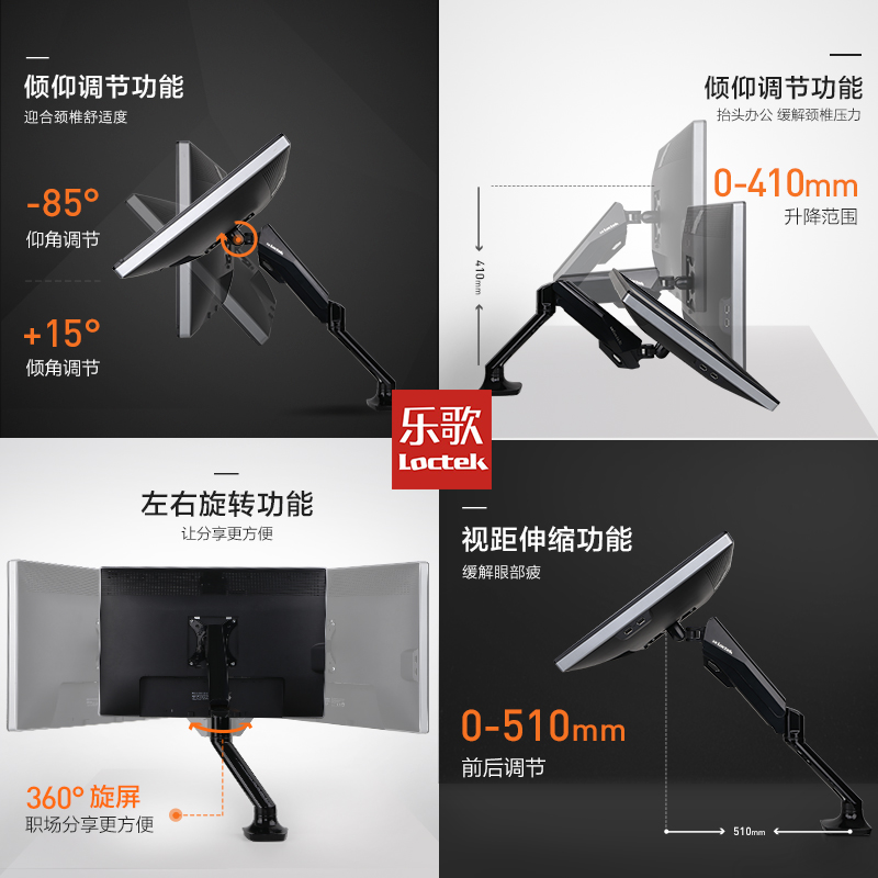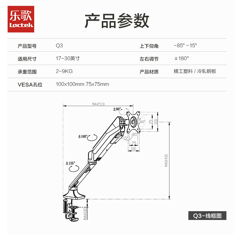 乐歌 Q3 显示器支架 /黑/承重2-9公斤/适用尺寸10-27英寸