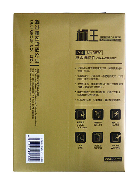 得力标王复印纸 70gA4纸打印标王木浆双面