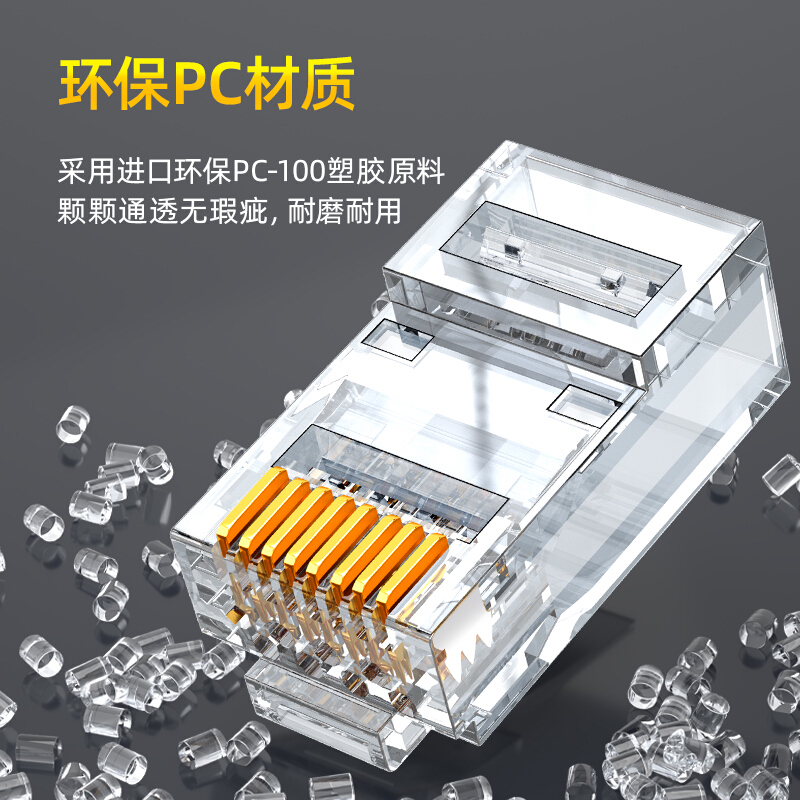 山泽(SAMZHE)六类直通穿孔式水晶头CAT6非屏蔽网络RJ45水晶头8P8C纯铜镀金100个装 CKT6100