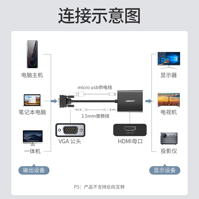 绿联(UGREEN)VGA转HDMI转换器 高清视频转接头 CM269