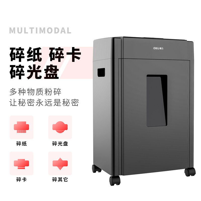 得力(deli)5级保密办公碎纸机(单次8张 20L 持续10分钟 可碎卡碎光盘)33043