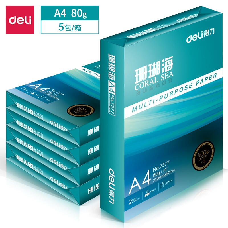 得力珊瑚海A4 80g(5包*500张)