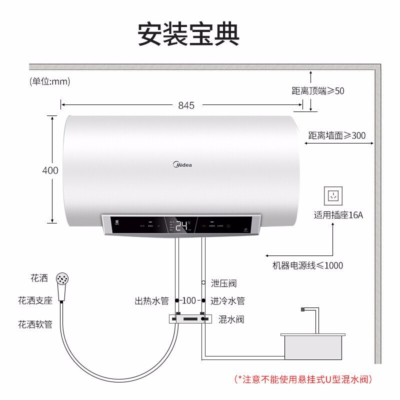 美的(Midea)F80-32DE6(HEY) 80升电热水器3200W变频速热 出水断电安全零电洗3.0