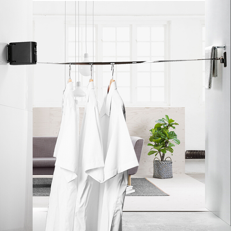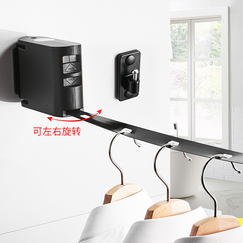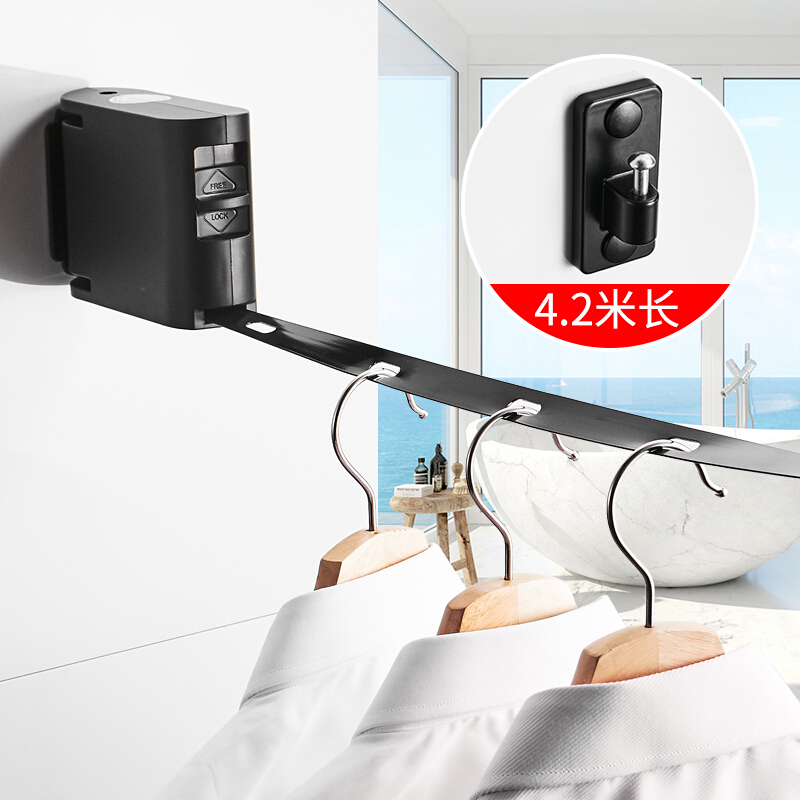 皇姿 隐形晾衣绳伸缩阳台免打孔宿舍室内小户型卫生间晒被子晾衣服神器 黑色(打孔)