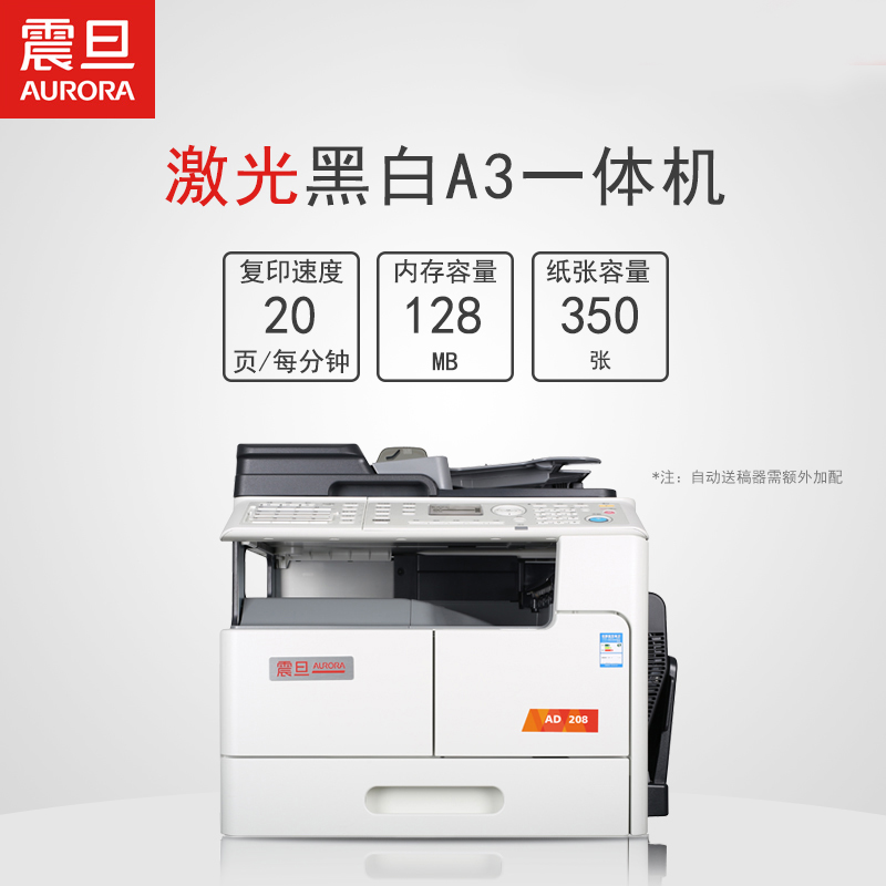商品属性 [商品重量] 28.2kg [型号] AD-208 [分辨率] 600 x 600dpi [打印速度] 20页/分钟 [复印速度] 20页/分钟 [首页复印时间] 6.5秒或更少 [尺寸] 607×570×458mm [编码] 2.13.01.05.01.004.00002